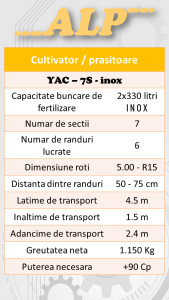 CULTIVATORUL marca ALP este folosit pentru PRASITUL INTRE RANDURI A plantelor prasitoare precum porumbul, floarea-soarelui, soia, sfecla de zahar etc.