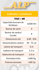 CULTIVATORUL marca ALP este folosit pentru PRASITUL INTRE RANDURI A plantelor prasitoare precum porumbul, floarea-soarelui, soia, sfecla de zahar etc.