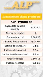 Semanatoarea pentru plante prasitoare marca ALP este folosita pentru semanatul de prezicie a plantelor prasitoare precum porumbul, floarea-soarelui, soia, sfecla de zahar etc.